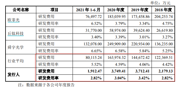 值得一提的是,作为一家科技类公司,三赢兴的研发投入却远逊于同行业其他公司。2018年至2021年1-6月,公司的研发费用率分别为2.82%、3.42%、3.04%和2.82%,均低于行业平均。(蓝鲸上市公司 王晓楠 wangxiaonan@lanjinger.com)